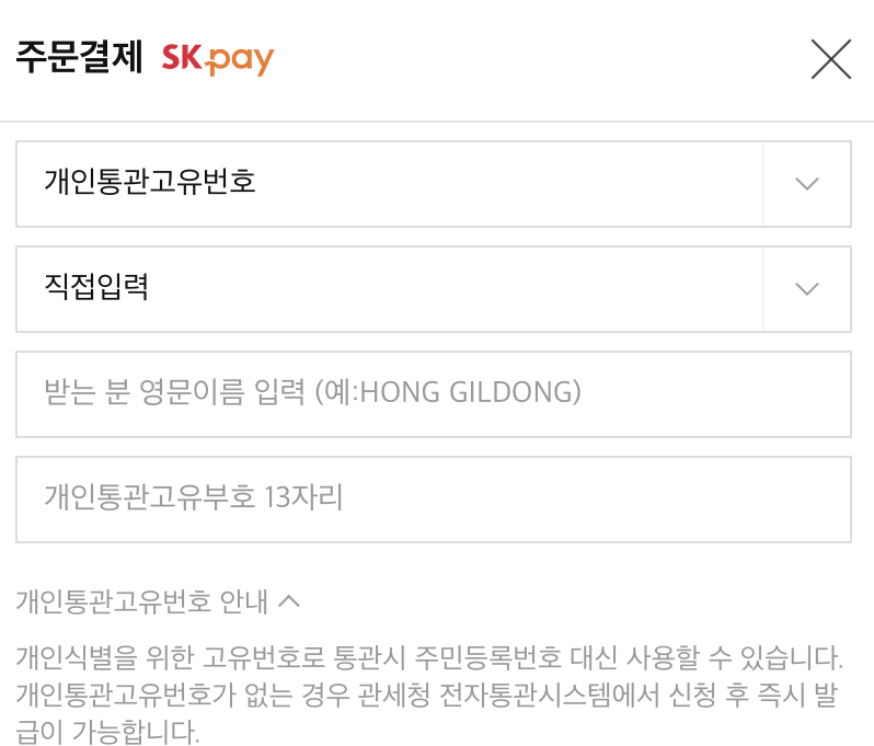 : 개인통관고유번호는 휴대폰번호 또는 공동인증서로 본인확인 절차를 거쳐,