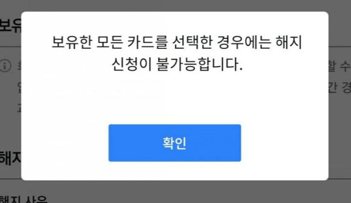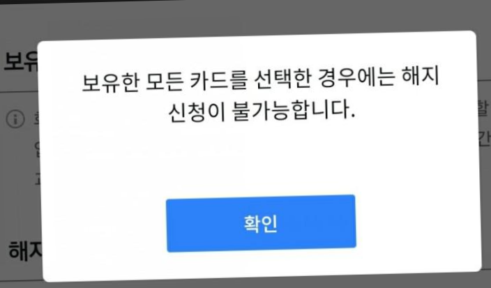 "보유한 모든 카드를 선택한 경우에는 해지 신청이 불가능합니다." 라고 뜨는 경우