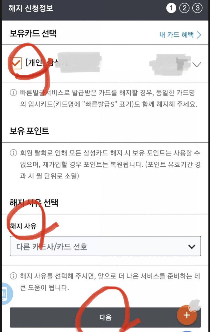 이 상태에서 삼성카드가 한장 이상 있다면 카드 해지 처리가 완료되며,