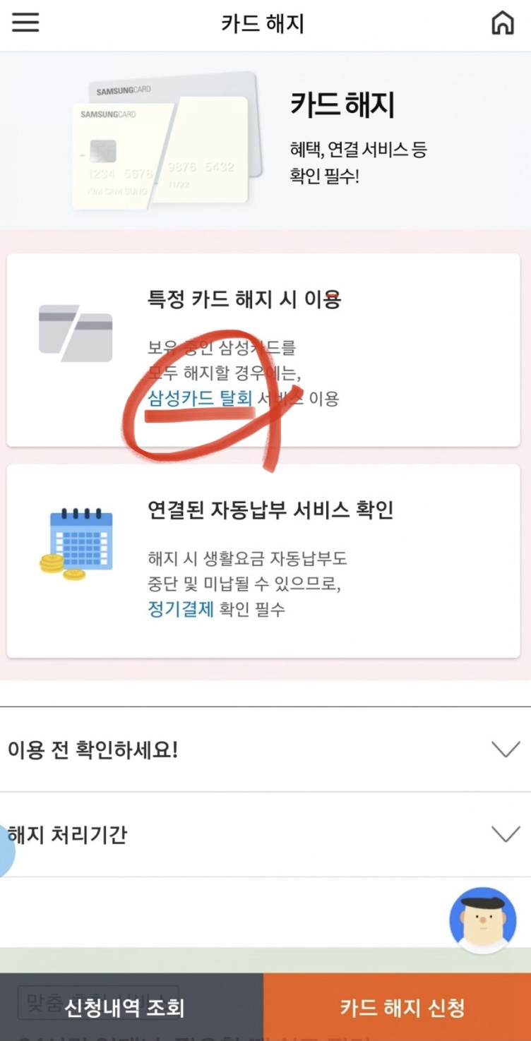 삼성카드 해지 모바일 앱으로 10초안에 간단 탈퇴 탈회 방법