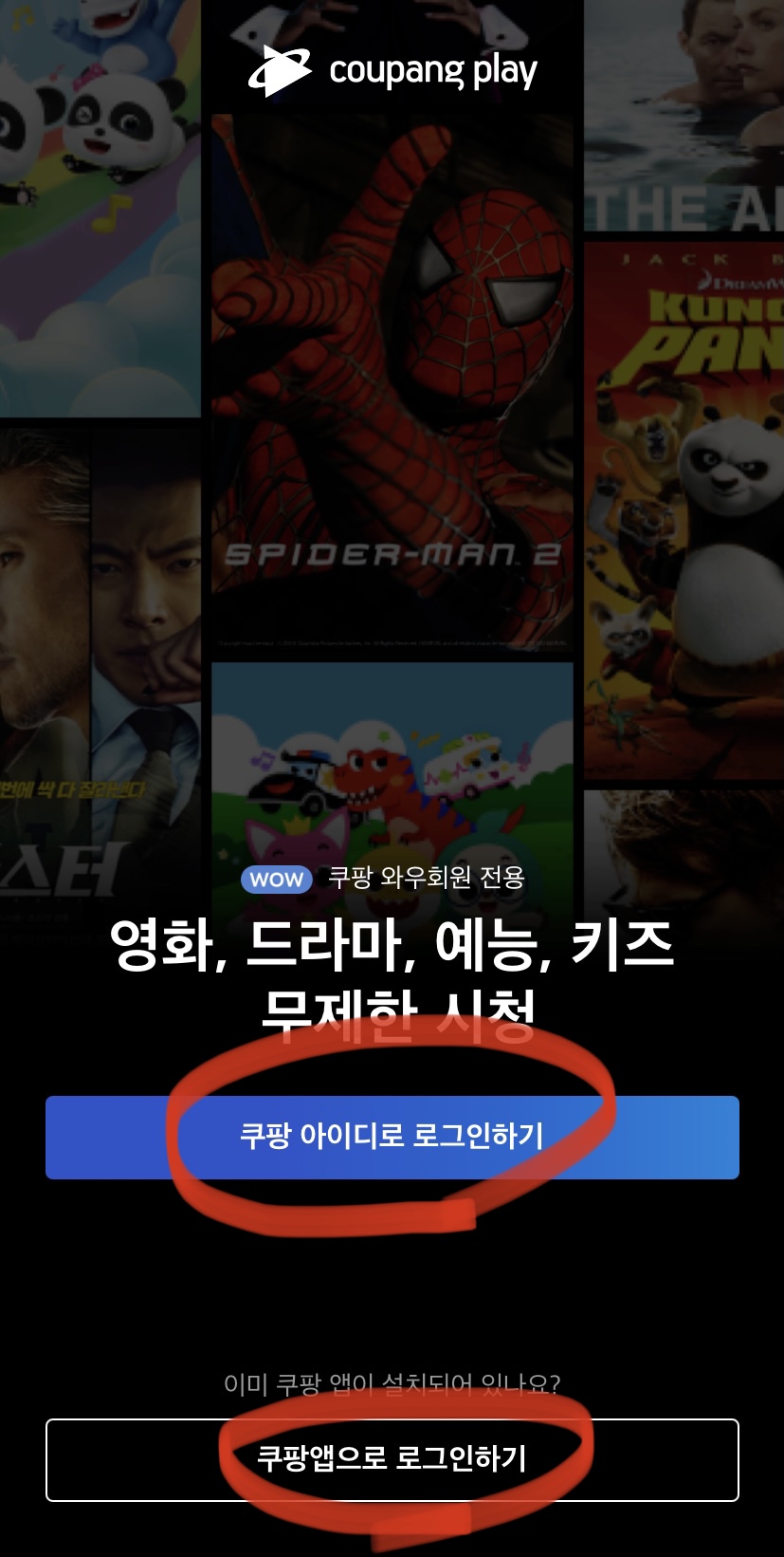 1) 기존 와우 회원이라면 쿠팡 앱을 통해 로그인 연계