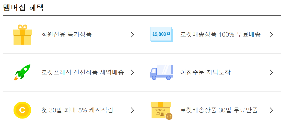 무료반품,환불 등의 서비스 제공한다. 아래와 같은 회원 혜택이 포함된 것이다.