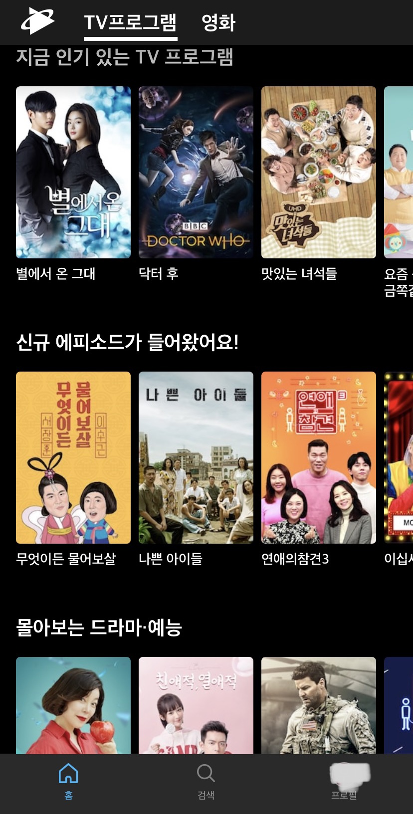 TV 프로그램 탭을 열면 아래와 같이 화면이 나타난다.