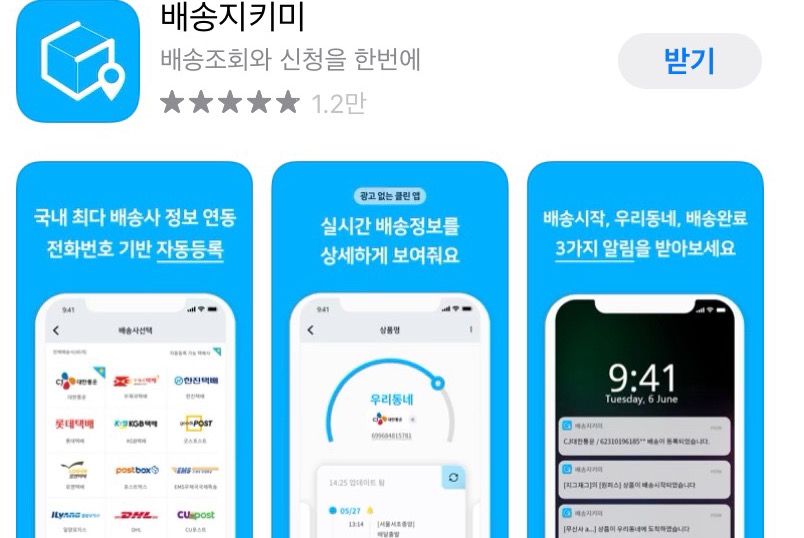 배송지키미 앱은 안드로이드 플레이스토어와 ios 앱스토어에서 "배송지키미"로 검색하여 아래와 같이 다운로드 및 설치가 가능하다.