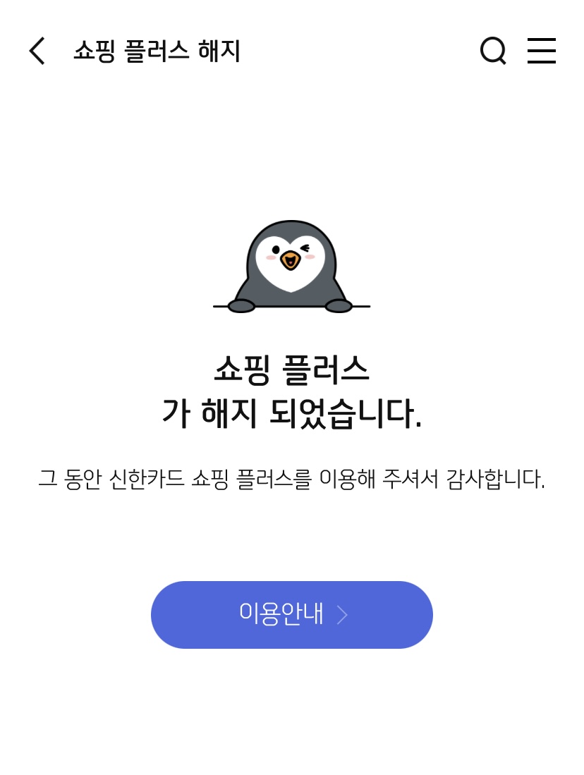 2. 해당 버튼을 누르면 신한카드 쇼핑 플러스 해지 안내 기능이 뜬다.