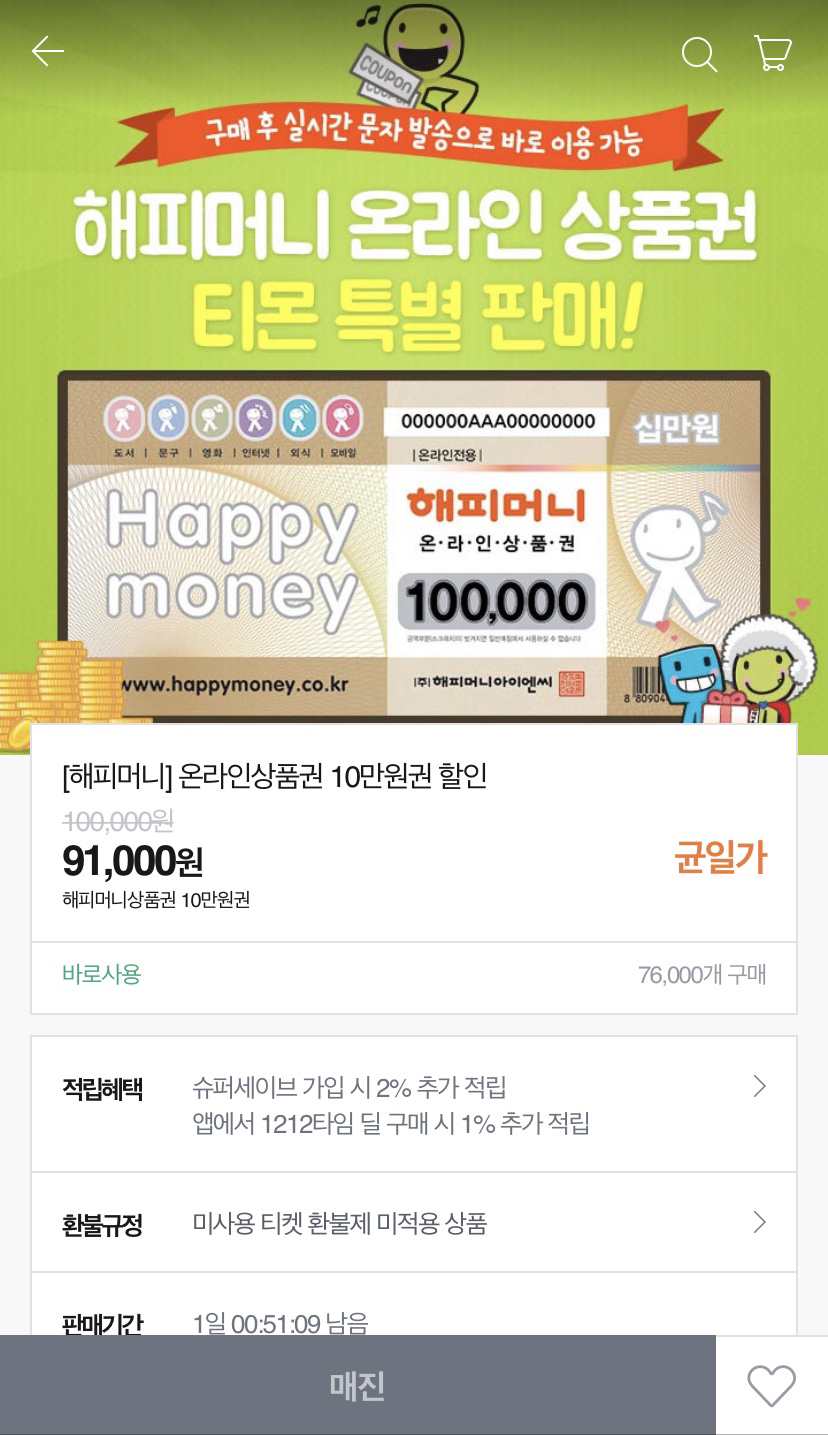 위에 소개한 포스팅에서도 설명한 바 있지만 해피머니 상품권이나