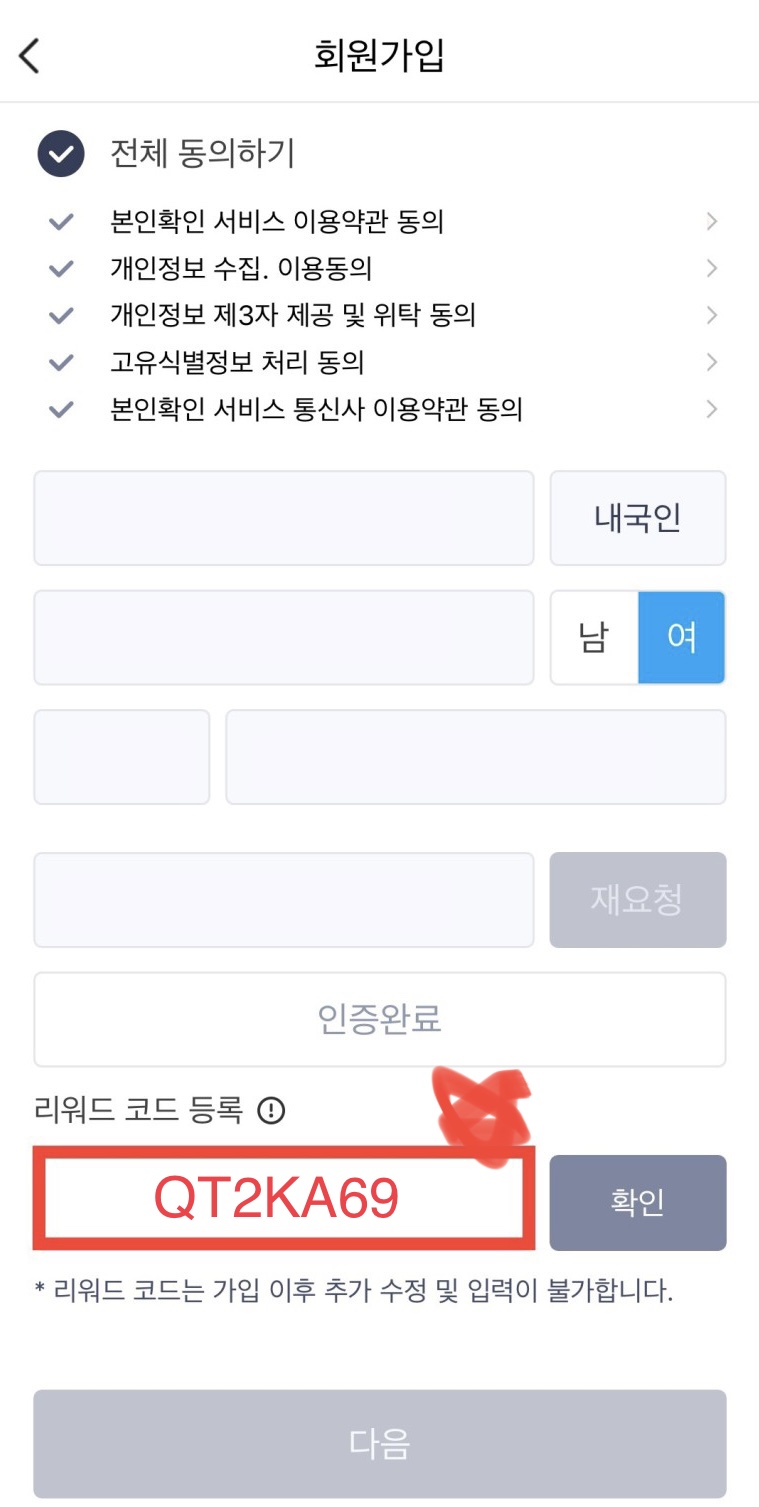 페이코드 가입 리워드코드가 없을 경우 아래 코드를 입력하면,