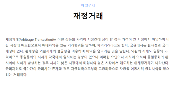 참고로 재정거래란 아래와 같이 어떤 상품의 가격이 시장간에 상이할 경우 가격이 싼 시장에서 매입하여 비싼 시장에 매도함으로써 매매차익을 얻는 거래 형태를 말한다.