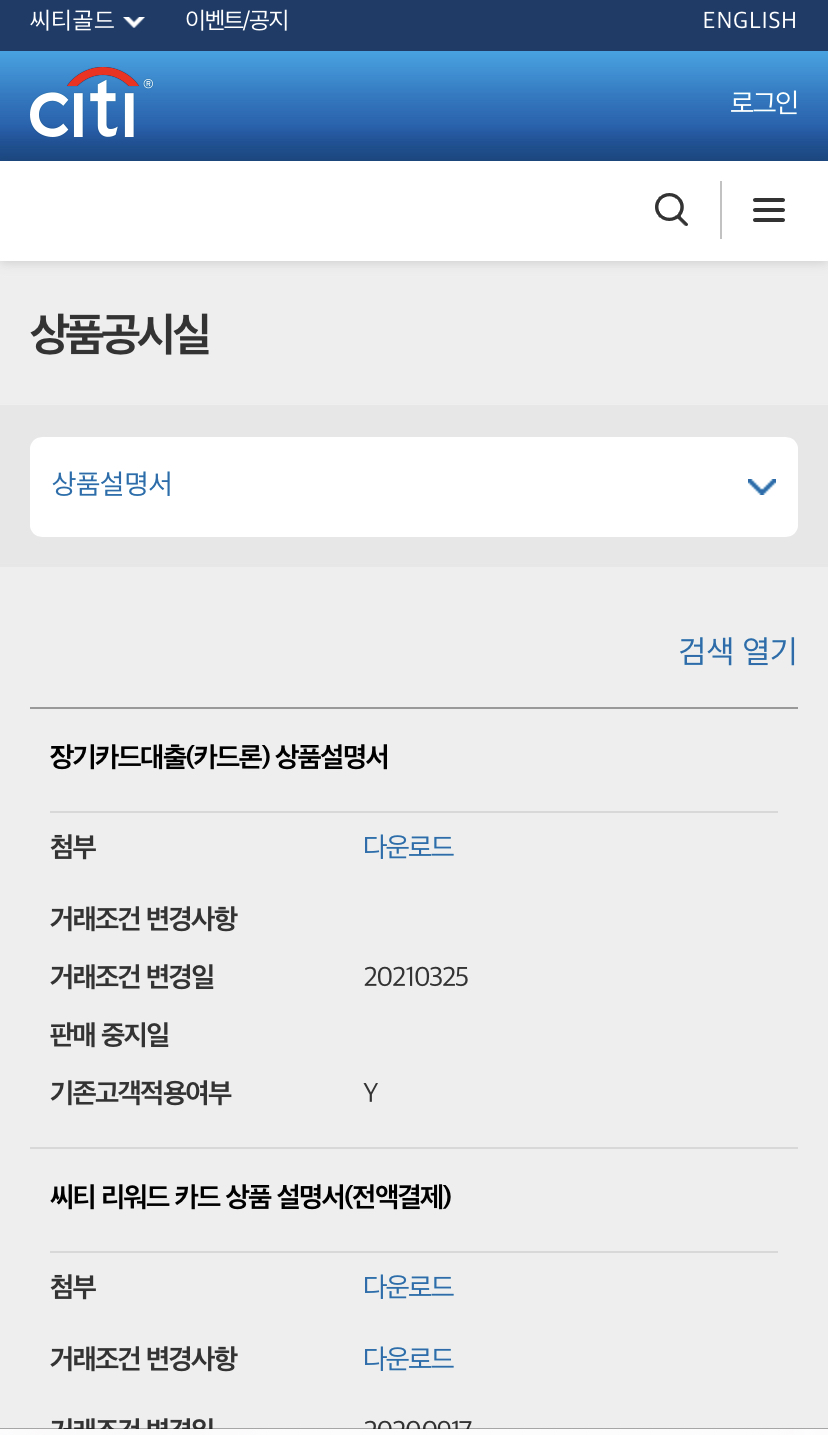 우선 단종된 신용카드나 체크카드의 상품설명서, 카드설명서를 찾는 방법은 무척 쉬운데