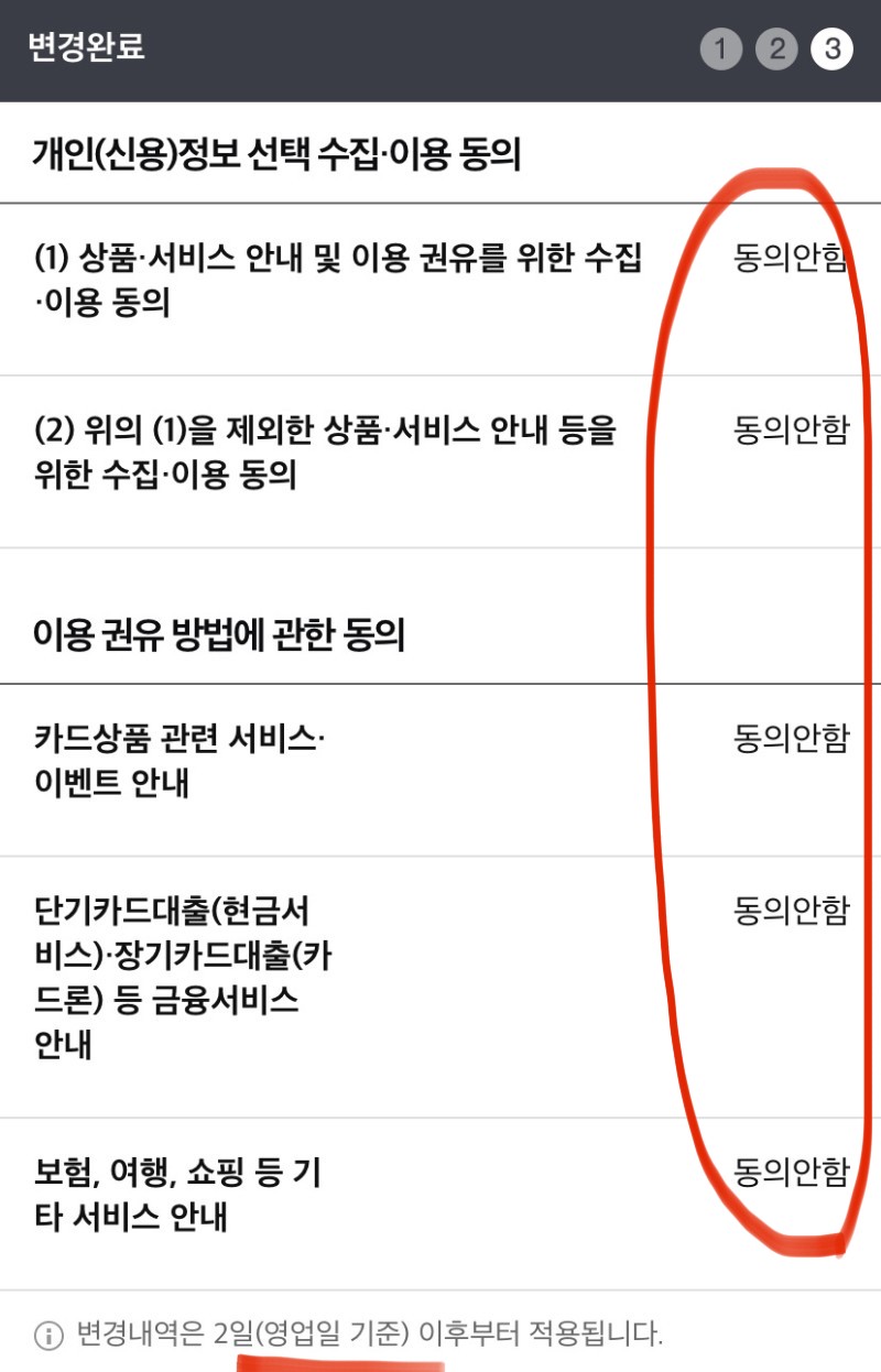 4. 변겨완료 상태 확인 - 동의안함