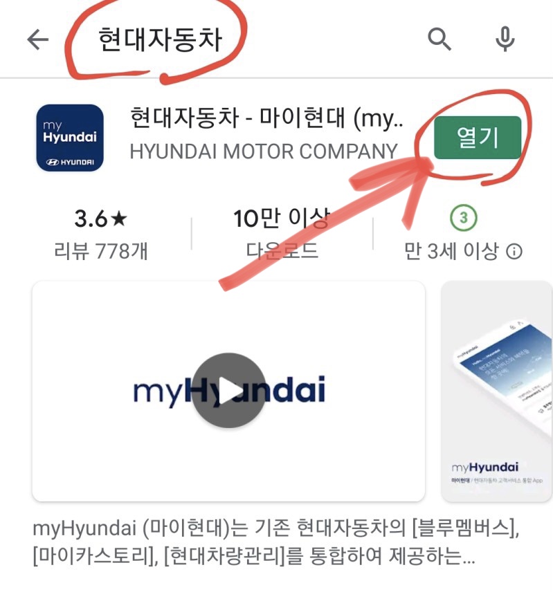 현대자동차 - 마이현대앱을 설치하여 실행한다.