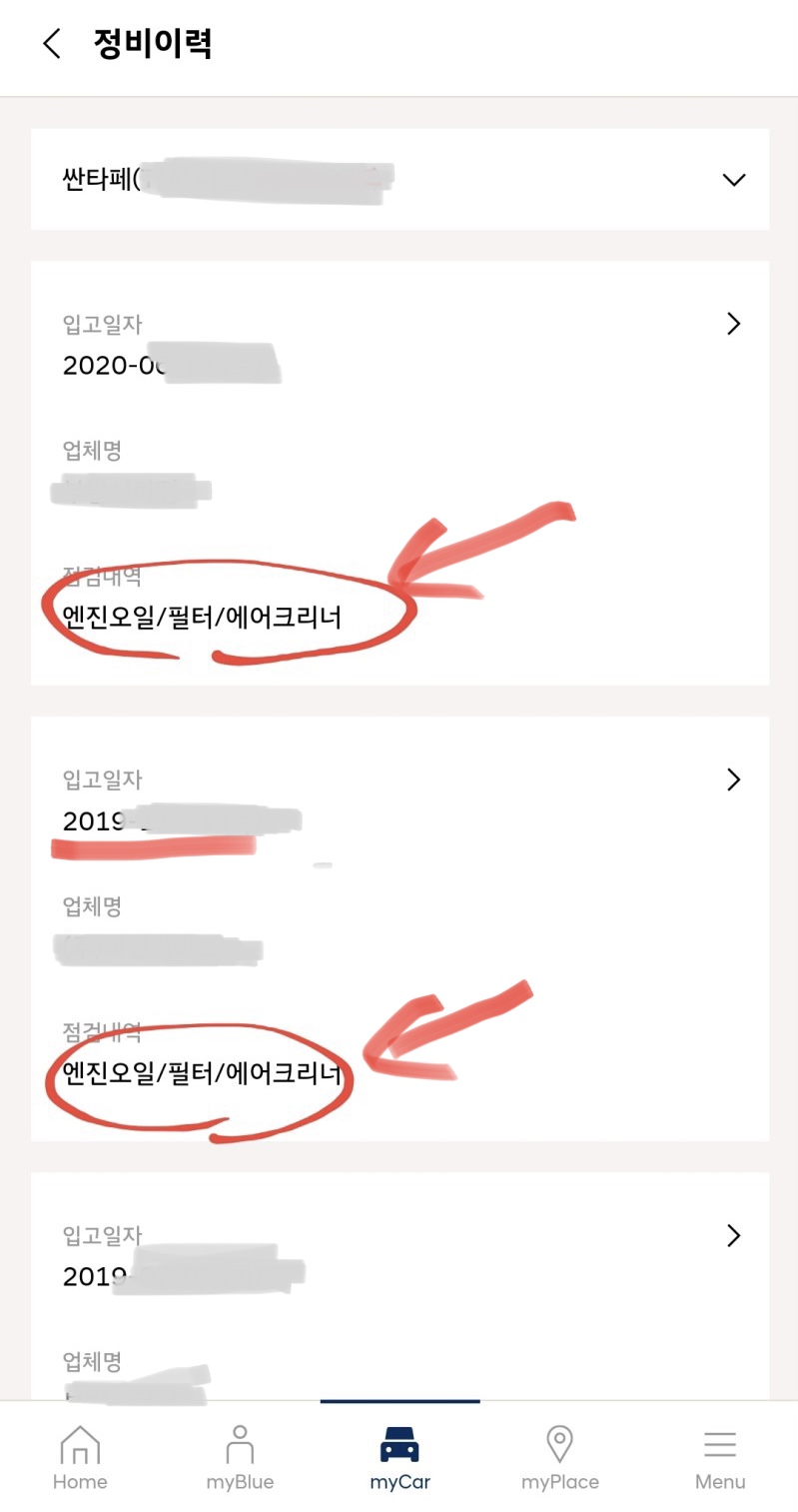 생각 외로 블루핸즈를 통한 정비이력 등을 손쉽게 확인가능한 듯 하여 아래와 같이 정리해보았다.