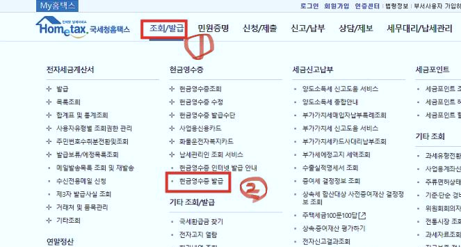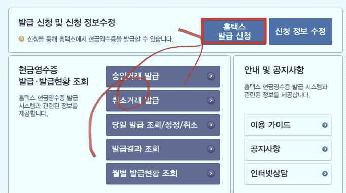홈택스 현금영수증 발급 시스템과 관련된 정보를 제공해준다.