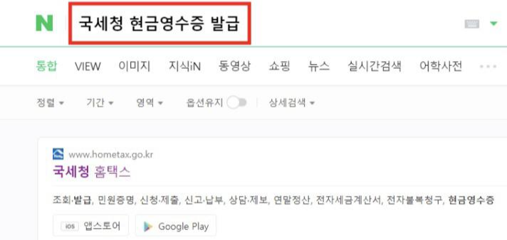"국세청 현금영수증 발급"이나 또는 "국세청 홈택스" 등을 검색하면 바로 상단에 나타나며