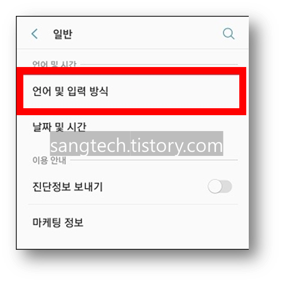 3. 언어 및 입력 방식 화면이 나타나면 기본 키보드 (삼성 키보드)를 선택한다.