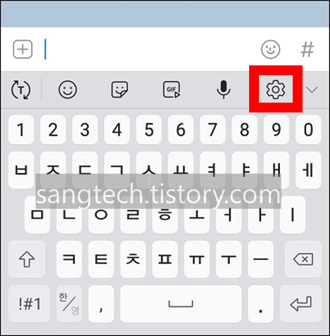 참고로 문자메시지나 카카오톡 문자 입력 등 스크린 키보드가 보이는 상태에서 키보드 자판 위의 톱니바퀴 모양의 아이콘을 누르면 바로 설정 화면으로 이동할 수도 있다.