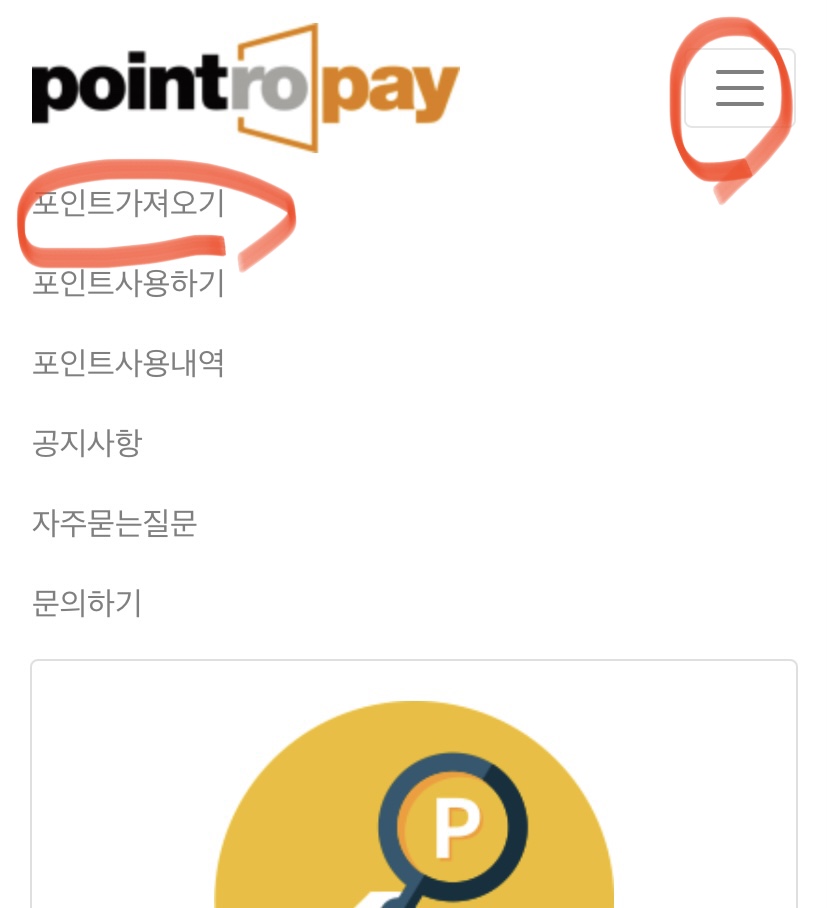 (1) 포인트로페이를 가입한 후 우측 상단 "전체메뉴" - "포인트가져오기" 선택한다.