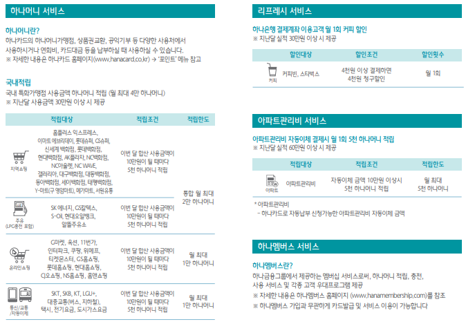 기본적인 혜택은 하나멤버스를 통한 하나머니 적립 서비스인데,