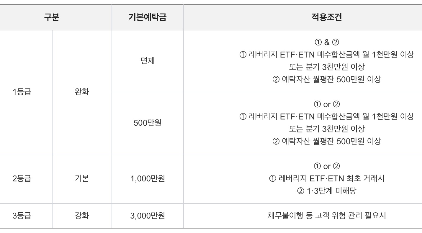 - 최초 등급 적용 : 기본예탁금 2등급 1,000만원 적용