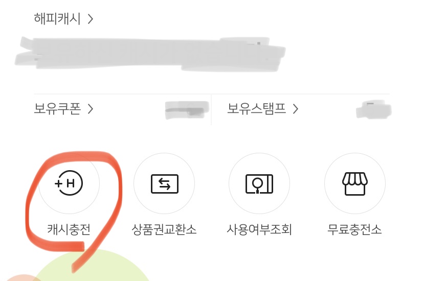 2. 해피머니앱에서 캐시충전 선택