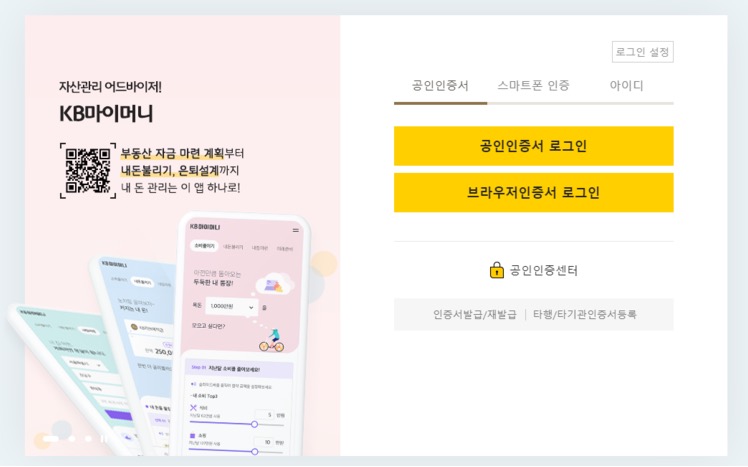 1. 데스크톱 PC에서 웹 브라우저를 열고 공인인증서로 kb국민은행 홈페이지로 들어간다.