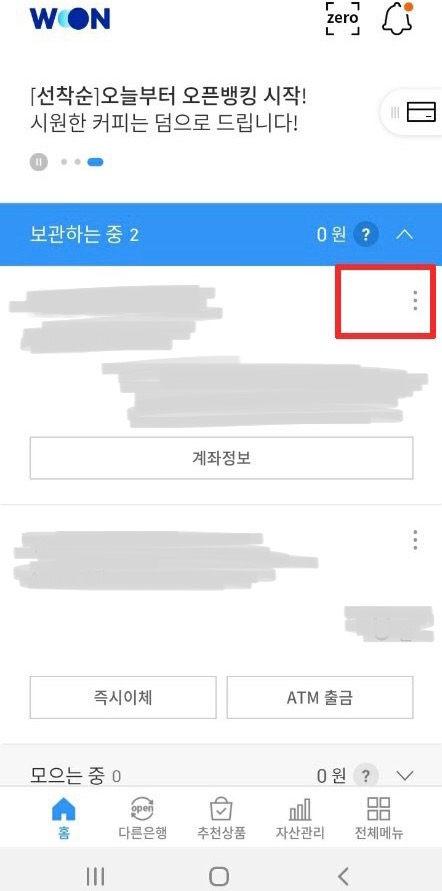 (2) 이체한 계좌번호 옆에 아래와 같이 더보기 점세개를 선택한다.